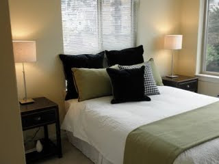 Pillows are a stagers best friend. You can instantly add a pow to the room. In our warehouse we have a wall devoted only to pillows. At this moment in time our warehouse organizer, Linda, had them color coordinated. A visual feast indeed.