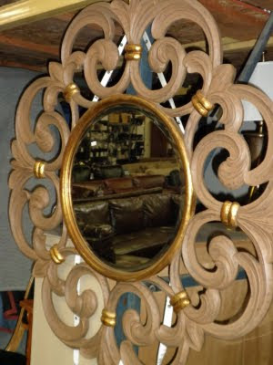 Imagine this mirror painted a high gloss white or black or even a daring orange. We tried to purchase a couple but couldn't fit them in our car so were hiring a trucking company to deliver them to us. These mirrors came from the l'Auberge Del Mar. It's fun when things come with a story.