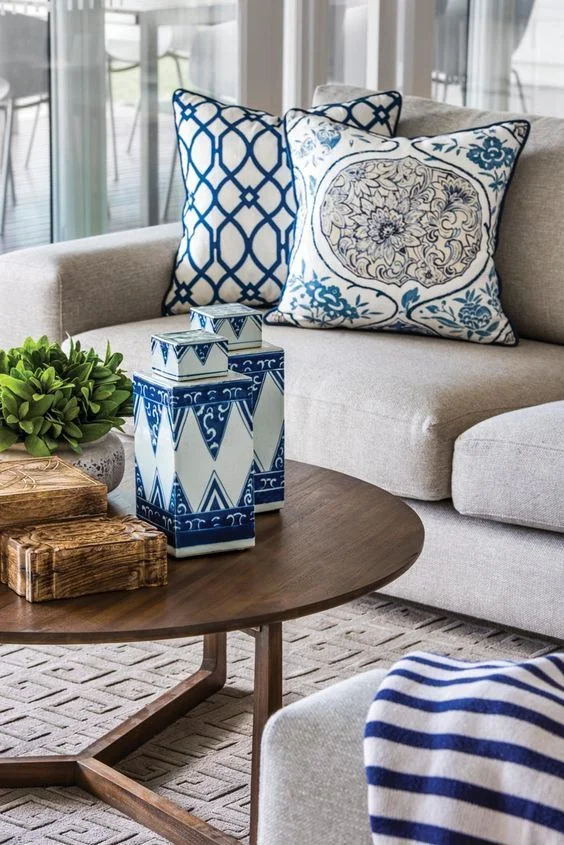Isn't this a great bed set up? And note the layered navy rug on the sisal.